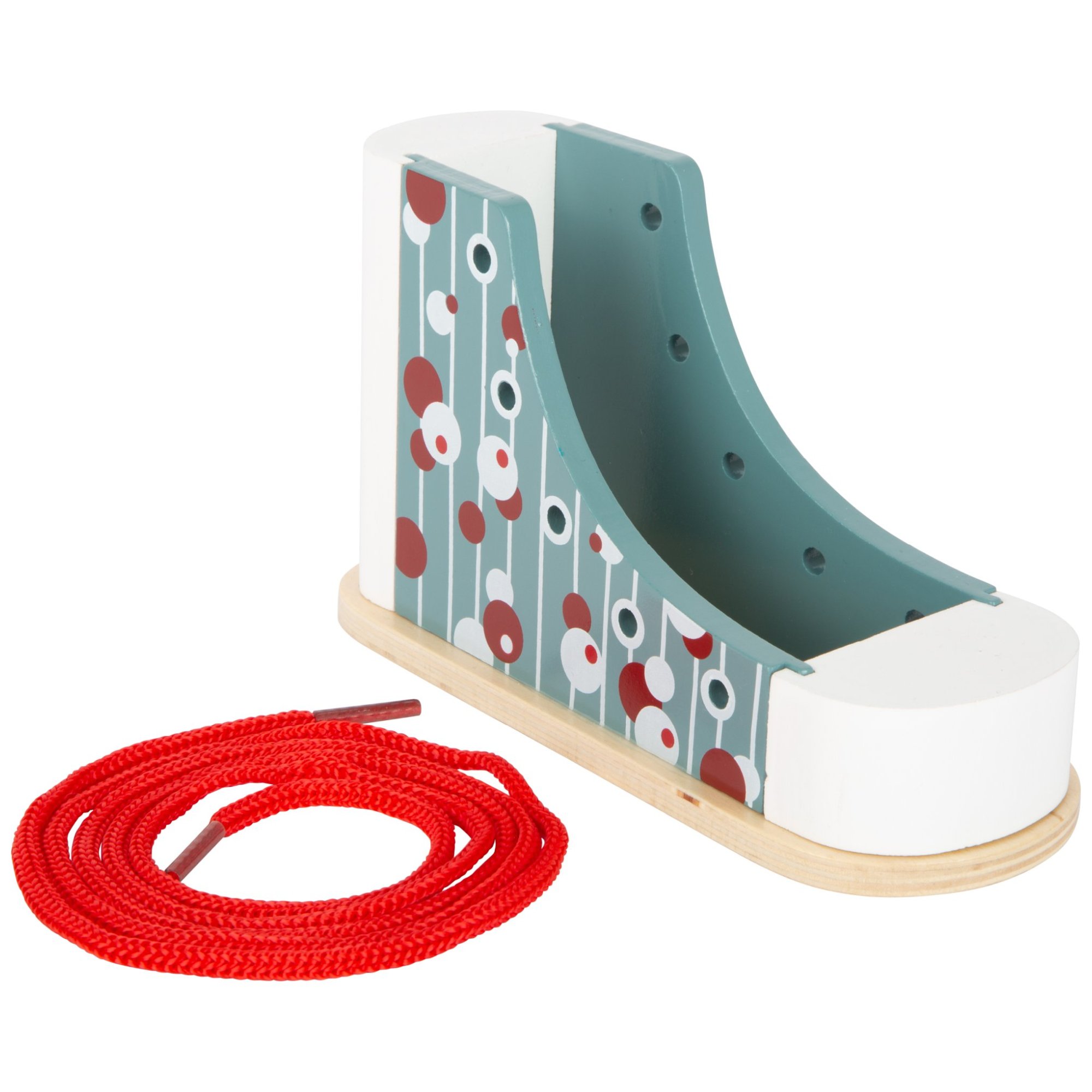 Mit diesem praktischen Lernschuh aus Holz im modernen Design lernen Kinder ganz spielerisch, wie man Schuhe schnürt, eine Schnur durch Ösen fädelt und eine Schleife bindet. Nebenbei wird Geduld und Feinmotorik geschult. Stabil und schwer genug hält der Schuh allen Bindeversuchen zuverlässig stand! Schuhe binden ist für viele Kinder eine Herausforderung. Mit diesem Schleifentrainer gelingt das Erlernen von Schuhschleifen im Nu. Schuhe binden leicht gemacht! Ideal für Kindergartenkinder!