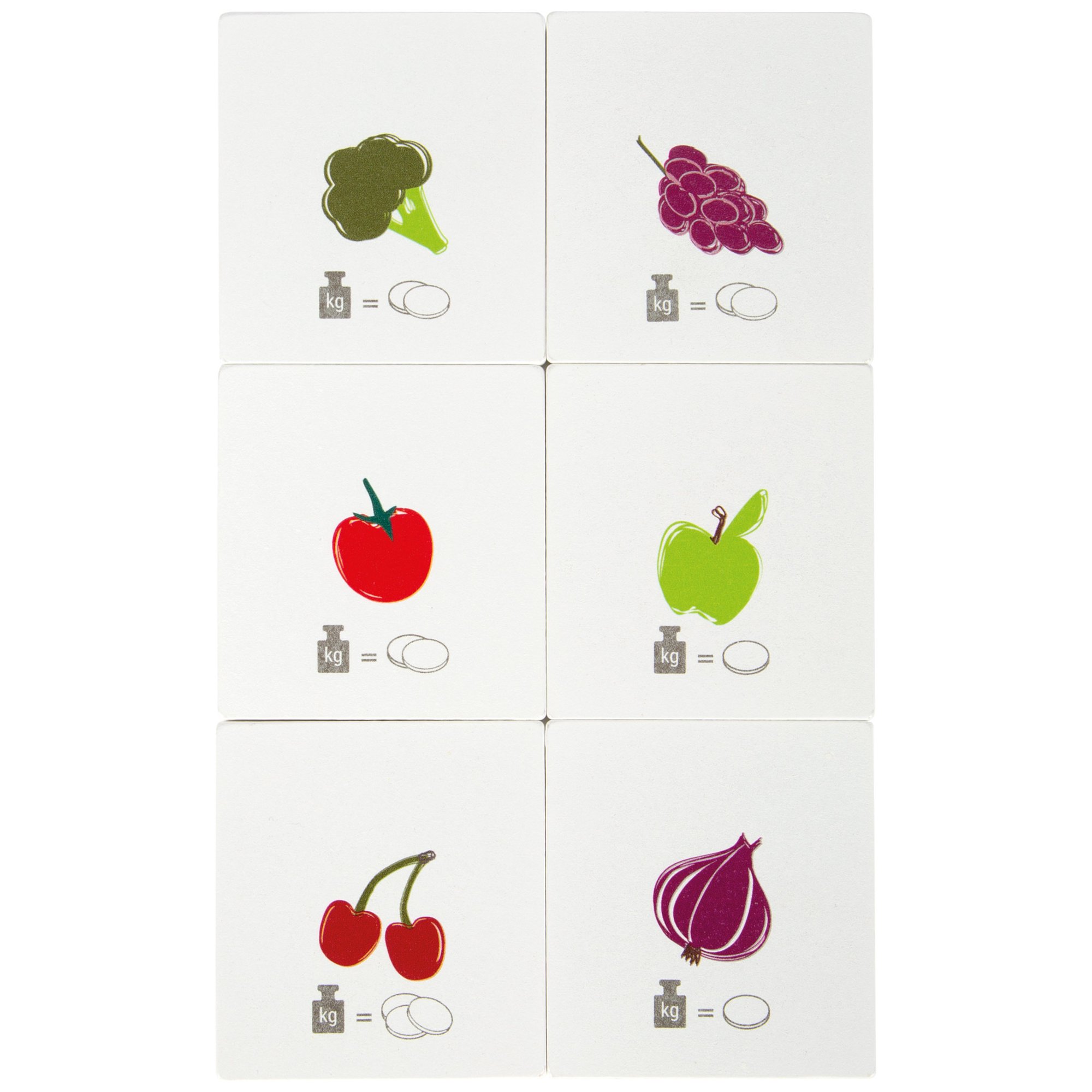 - Inklusive 6 doppelseitigen Obst- und Gemüsekarten